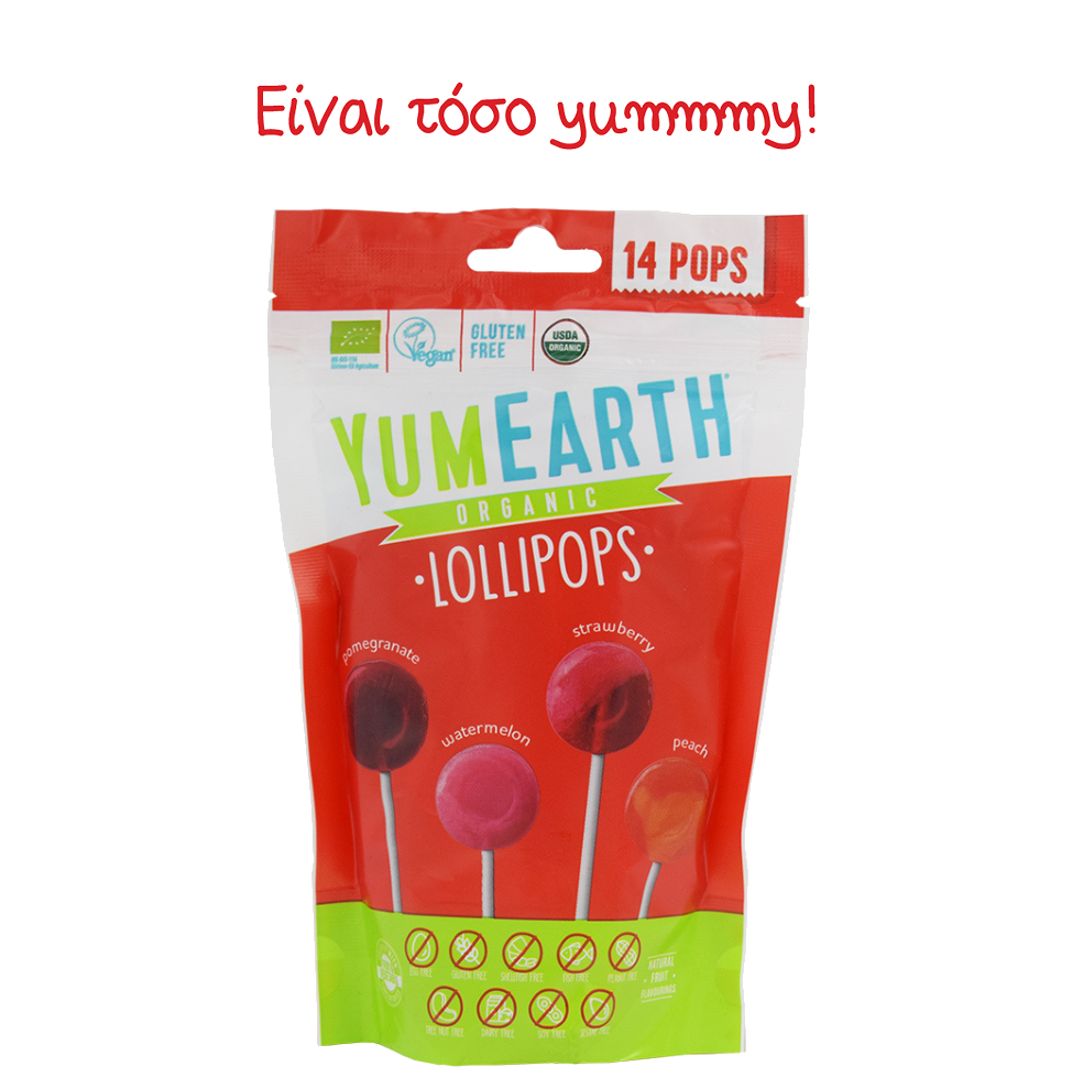 Yummy Earth τα καλύτερα γλειφιτζούρια του κόσμου. Αγνά και απολαυστικά από 100% φυσικά εκχυλίσματα βιολογικών φρούτων χωρίς αλλεργιογόνα και τεχνητά αρώματα. Με συστατικά όπως βιολογικό χυμό από ζαχαροκάλαμο, βιολογικό σιρόπι ταπιόκας και ρυζιού,εκχυλίσματα φρούτων, φυσικές γεύσεις από βιολογικά φρούτα όπως….φραγκοστάφυλο, πράσινο μήλο, μάνγκο, καρπούζι, ρόδι,πορτοκάλι, φράουλα, κεράσι, σταφύλι, βατόμουρο θα κάνουν όλους ευτυχισμένους !!!!